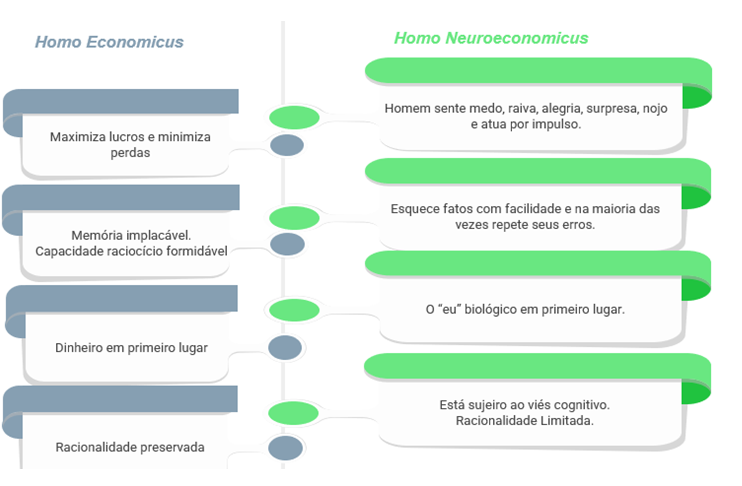 Conforme avanço da neuro economia (homo neuroeconomicus), tem-se tornado cada vez mais conhecido o entendimento de que o fator emocional é determinante para a tomada de decisões saudáveis, lucrativas ou catastróficas aos negócios, contrapondo-se a ideia de que, economicamente somos racionais ao extremo (homo economicus).